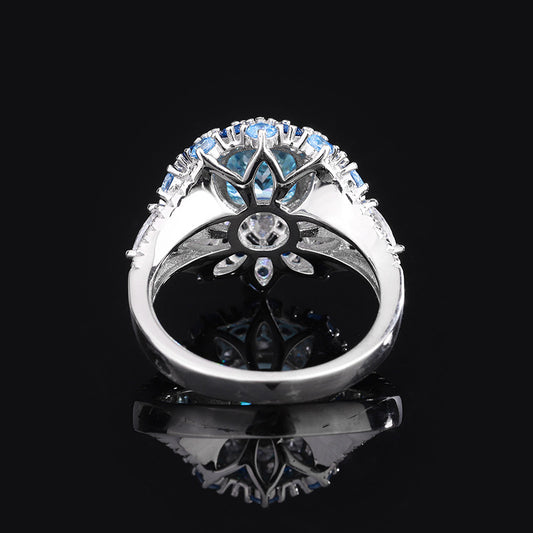 2022 New arrive S925 silver color aquamarine stamen texture luxury ring main stone 8*8 mm