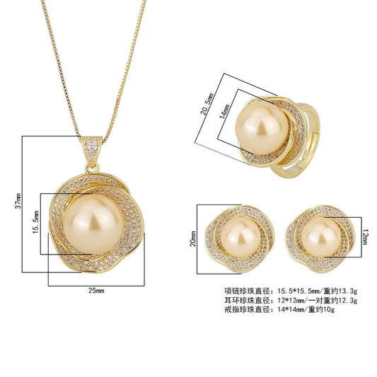 2022 new gold beaded Korean version of the fashionable hand-set diamond ring pendant earrings set 16mm 12mm