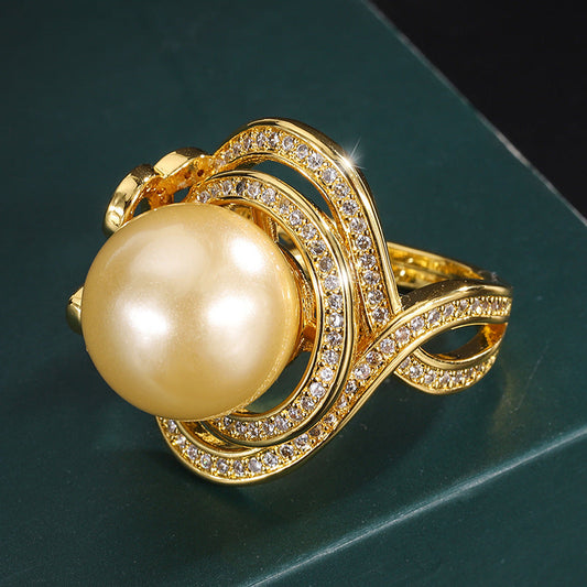 2022 new inlaid Gold plated and white beaded light yellow gold vintage fashion crystal ring 16mm