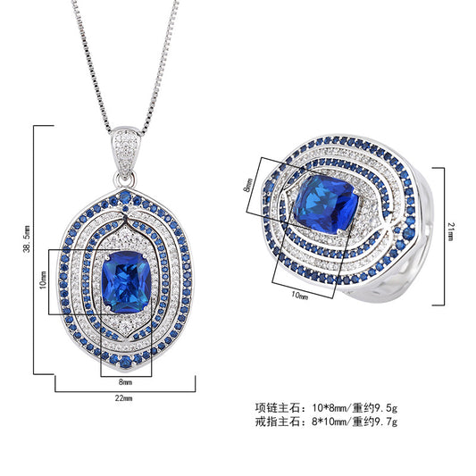 2022 New Popular retro style ring sapphire two-color stone CZ pendant ring and earring set master for woman jeewlry 8*10