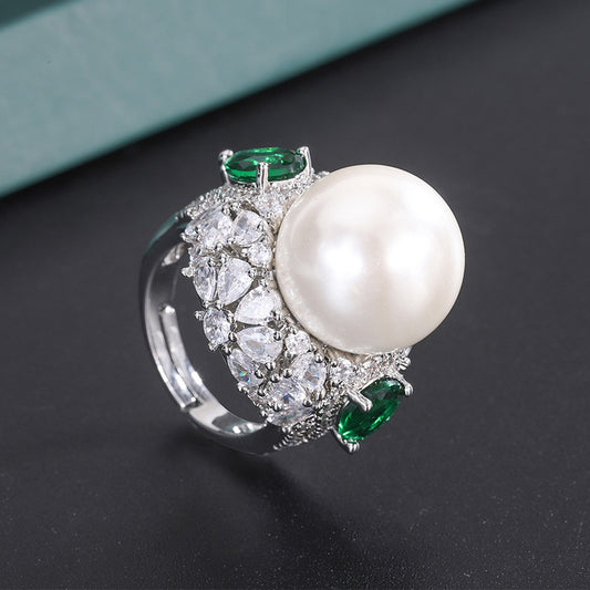 2022 Hot Copper-plated real 18k gold new inlaid aubergine Pearl Lace style temperament diamond-encrusted ring female 14mm