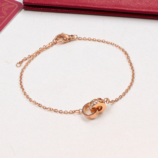 CB102 Hot sale 316L Fashion Stainless Steel Double annulation bracelet&bangle with diamond