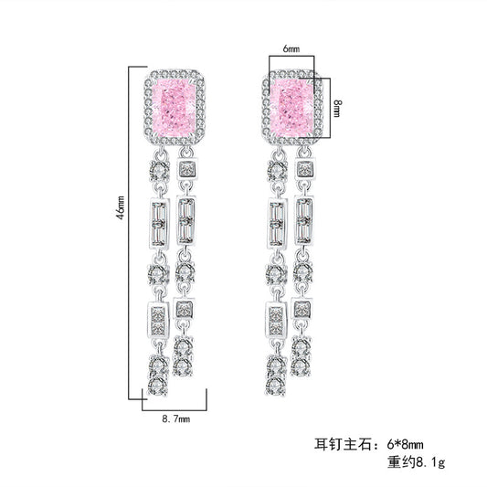 LEM37 S925 Silver Net Red Anchor Hot Selling High earring CZ Radiant Cut Simulation Color Treasure Earrings Main Stone 6*8