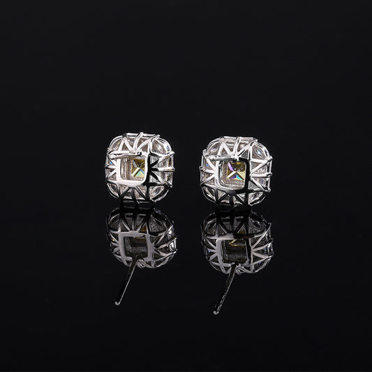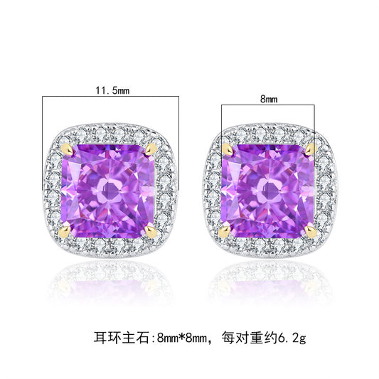 GEM11 S925 silver high carbon CZ Yellow color treasure color small square earrings retro simple women's earrings 8*8