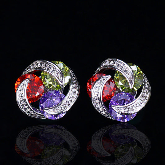 CEM02 Hot Sale Fashion Luxury Super Glitter Crystal Beautiful blue and red color Earrings For Women Jewelry
