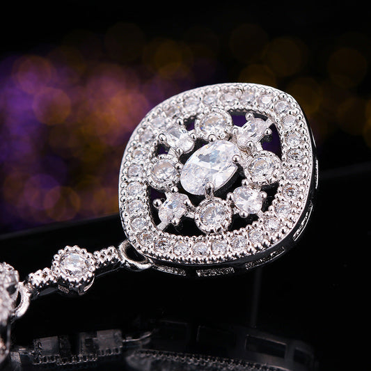KR33 DR66 New Fashion High Quality temperament Step Square Crystal Ear Nail Anti Allergy For Women Jewelry