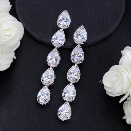DEM87 Simple Fashion Earrings Long Water Earrings for woman Luxury Super Glitter Crystal Beautiful Earrings For Women Jewelry