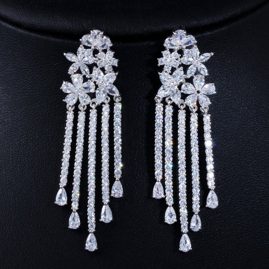 S925 Silver Needle Color Flower Water Drop Long Tassel Earrings Crystal Beautiful Bridal Luxury Earrings for women jewelry