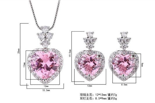 LEM15 Colorful treasures simulation pink CZ jewelry set earrings main stone 8*12 pendant necklace 10*14