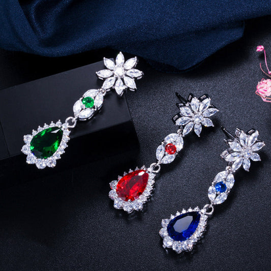 LEM36 Fashionable New High-quality Crystal Flower Earrings Anti Allergy Jewelry Women's jewelry Versatile Long Water Earrings