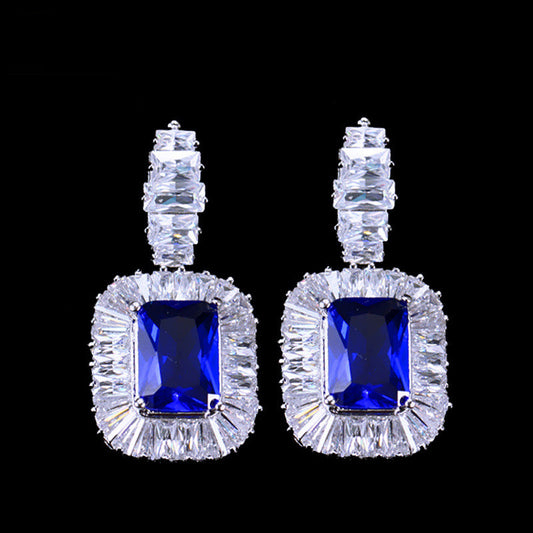 DEM06 Personalized Fashion Quality Crystal Earrings Luxurious Blue Crystal Pendant Earrings For Women Jewelry