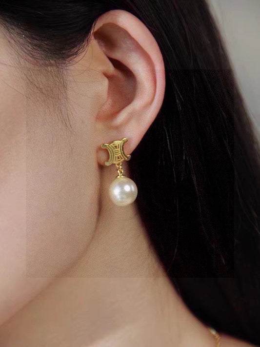 CEM190 New Classic Titanium Steel Earring Designer 18K Gold Cubic Pearl Pendant Stud Earring Women Mens Love Promise Jewelry