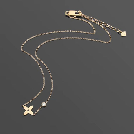 VT903 New Fashion Titanium steel flower Gold/silver/rose Necklace beautiful for Women Couples Cubic Zirconia gift to choose