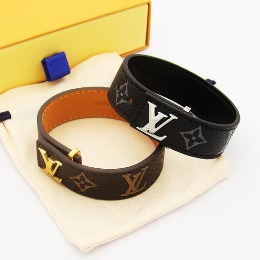 LEM261 Luxury Designer Jewelry Leather 18K Gold Plated Stainless steel Bracelet men Womens Wedding Gifts