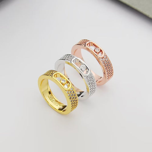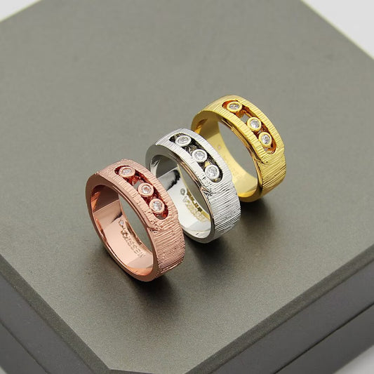 LEM267 Original Brand Designer A three-color three-piece ring set with full diamonds and hollowed-out flowers RINGS
