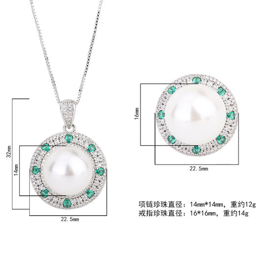 LEM59 2022 New White Bead Separation Cz Round Ring 14mm and Pendant 16mm Ladies jewelry Set