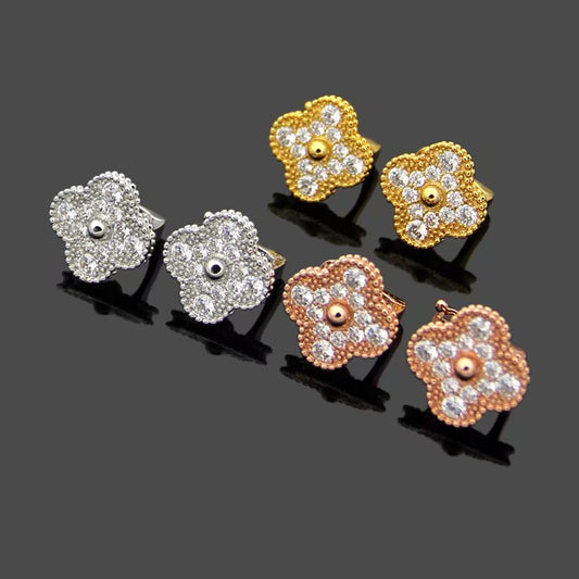FY60 Fashion Stainless Steel Design Stud flower Earring Charm For Women Gold Earrings Jewelry