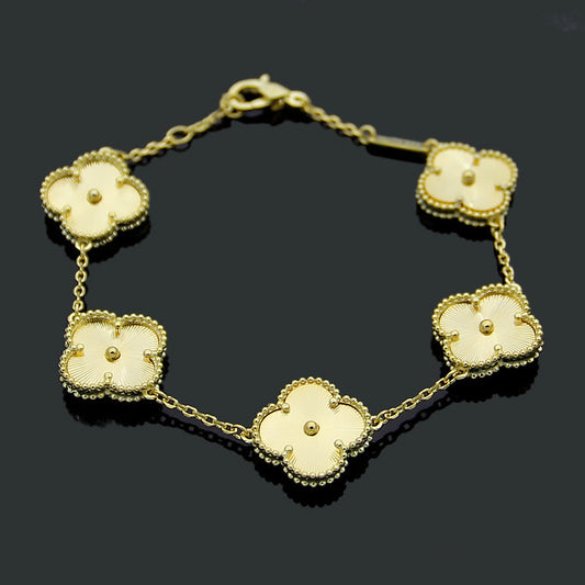 FY52 New Fashion Titanium steel silver and gold color bracelets for Women Charm flower bangle Couples gift