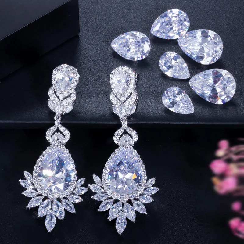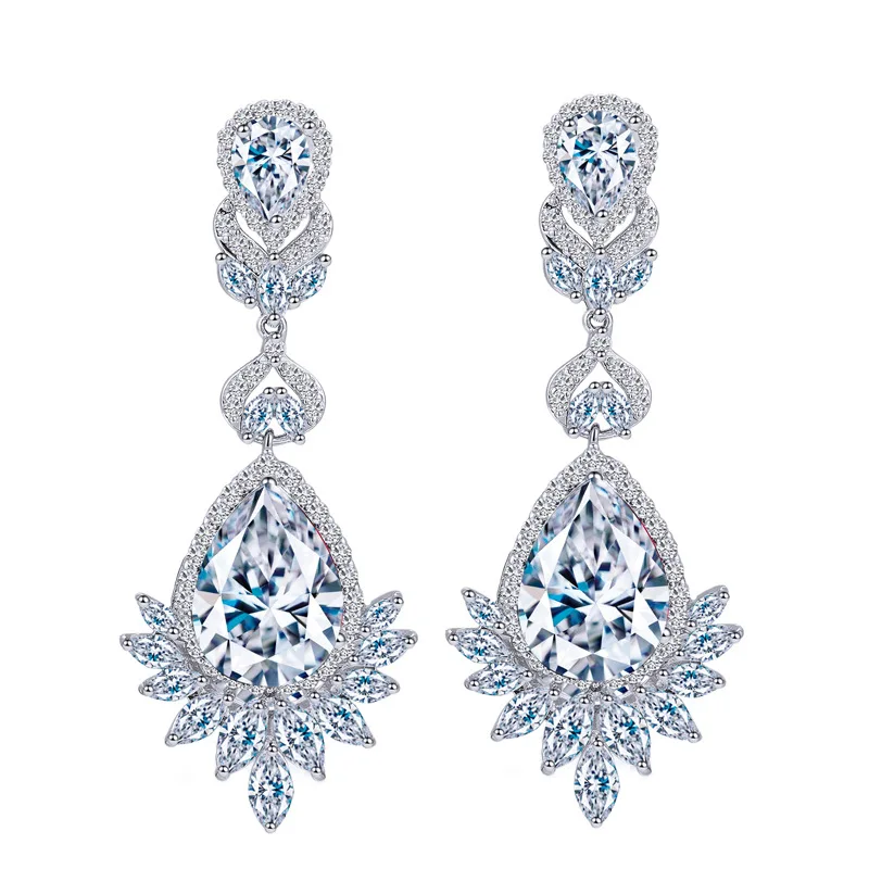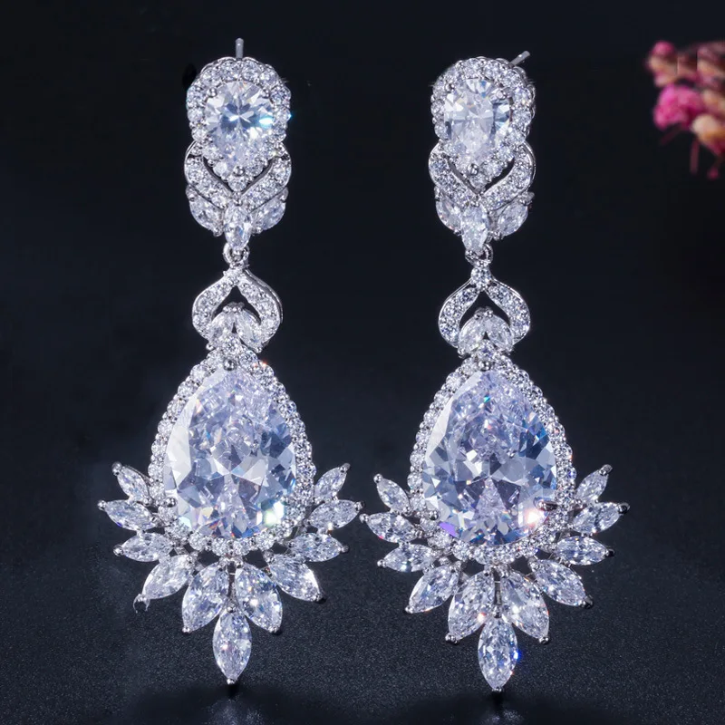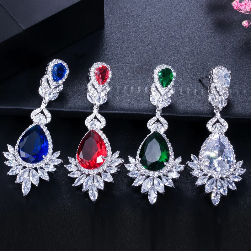 CEM11 Hot Sale Super Flash Micro Water long Earrings Beautiful Lady blue and red white Earrings Earrings Dinner Jewelry