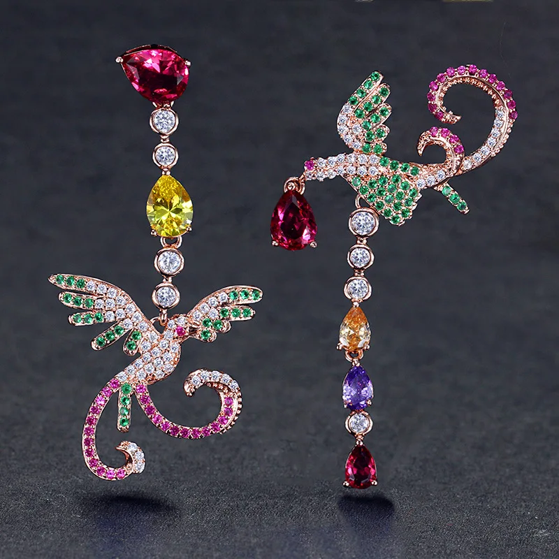 Bk02 Hot sale Fashion Luxury National Style Long Earrings Phoenix S925 Sterling Silver Needle Colorful Beautiful women Earrings