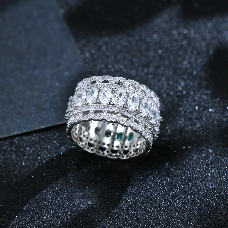 New Fashion Jewelry CZ Ring Micro Crystal Set Beautiful Women's Ring Environmental Protection Copper Plated Hand Ornament