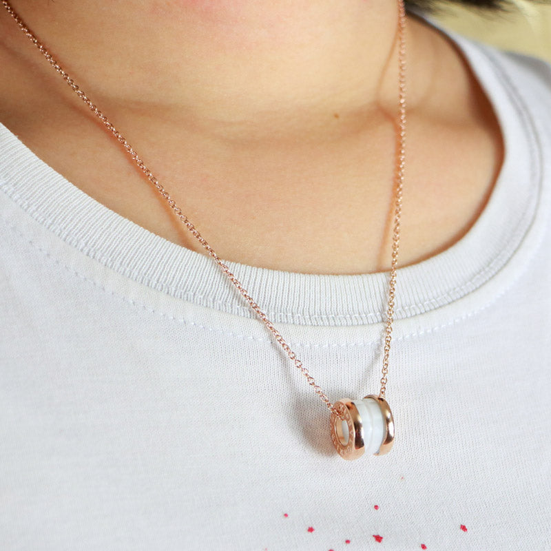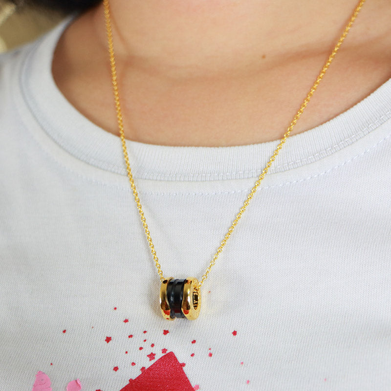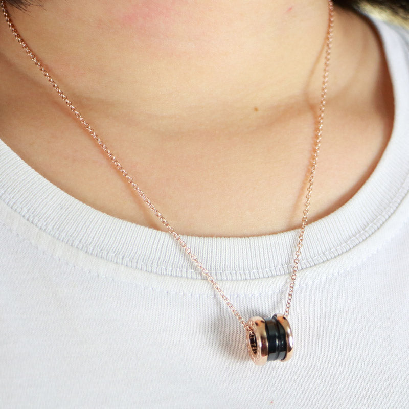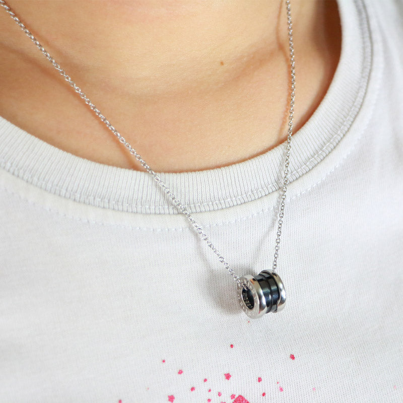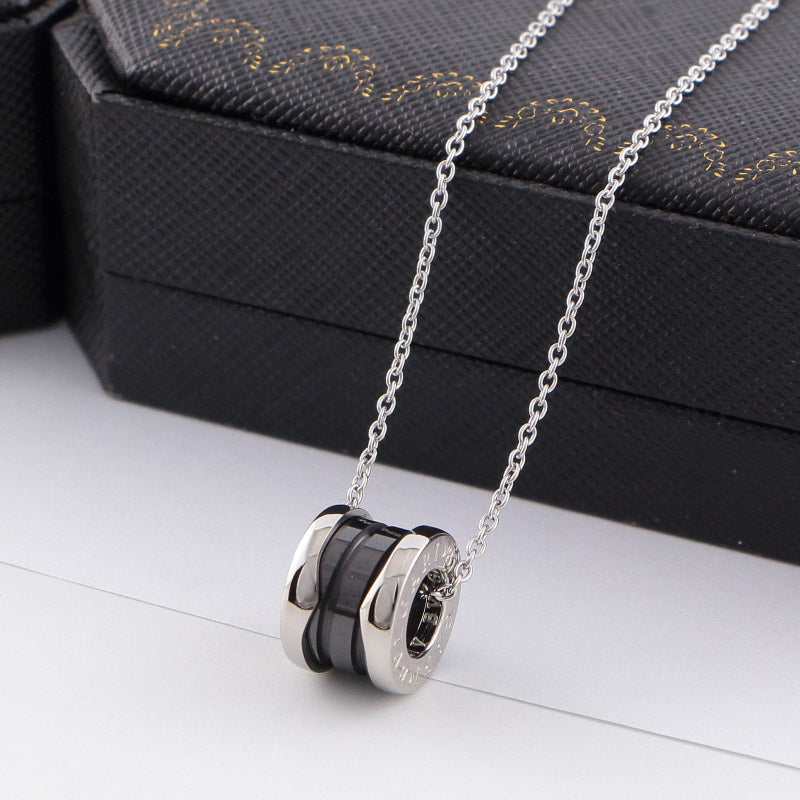 BU40 New Fashion Titanium steel black and white color Necklace for Women Couples Anel Cubic Zirconia Wedding Bands gift