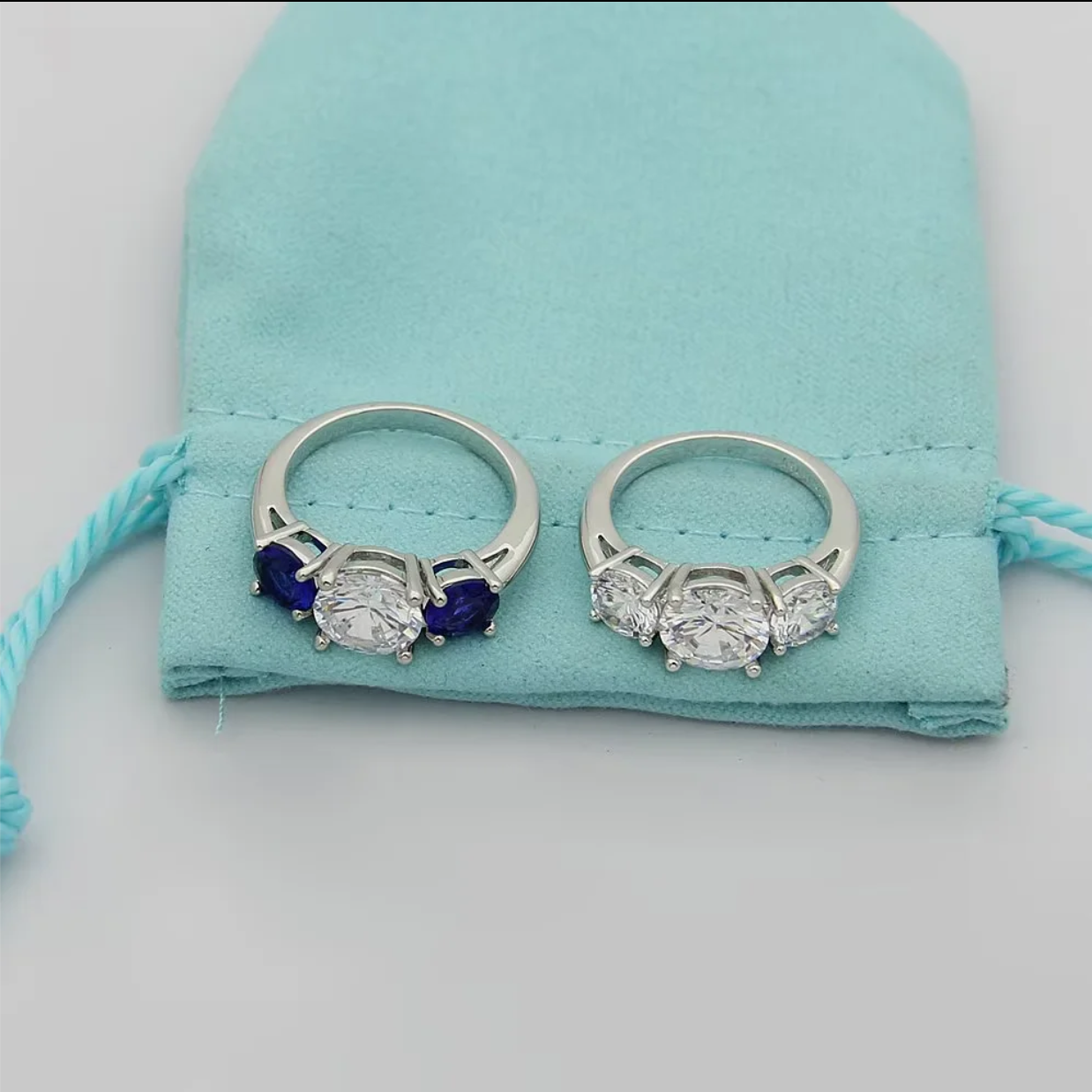 TEM37 Three-diamond Ring Couple White Diamond in Between Blue Diamond Ring Women's Diamond-studded Wedding Ring Women Couples Wedding Rings Bands Bague Femme